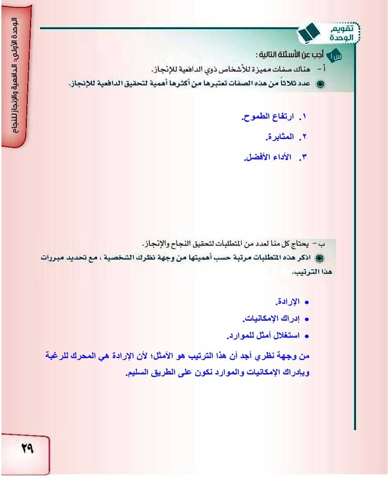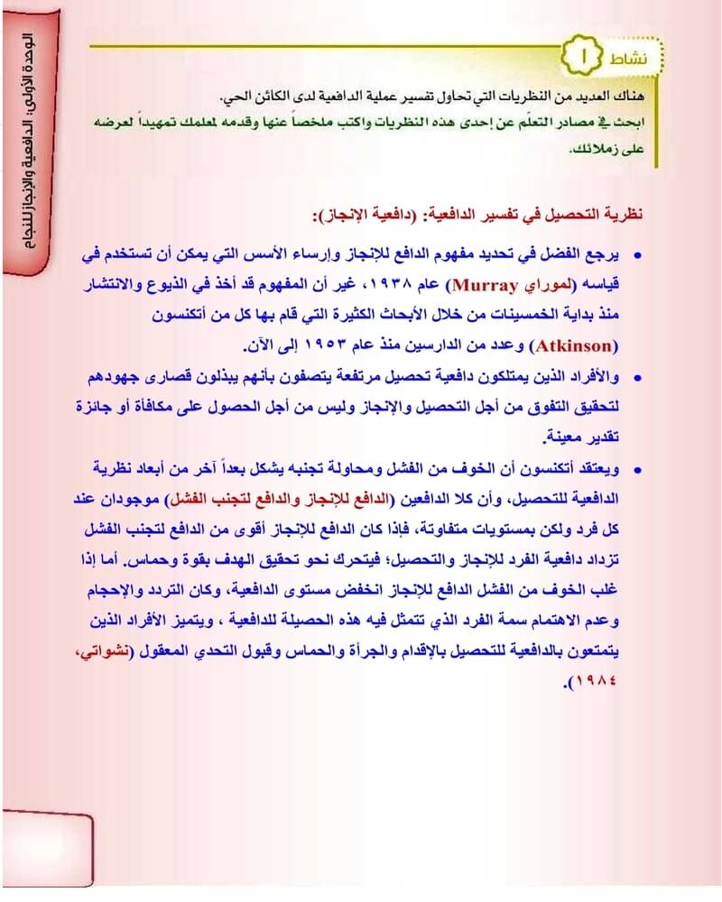 الوحدة الاولى الدافعية والانجاز للنجاح