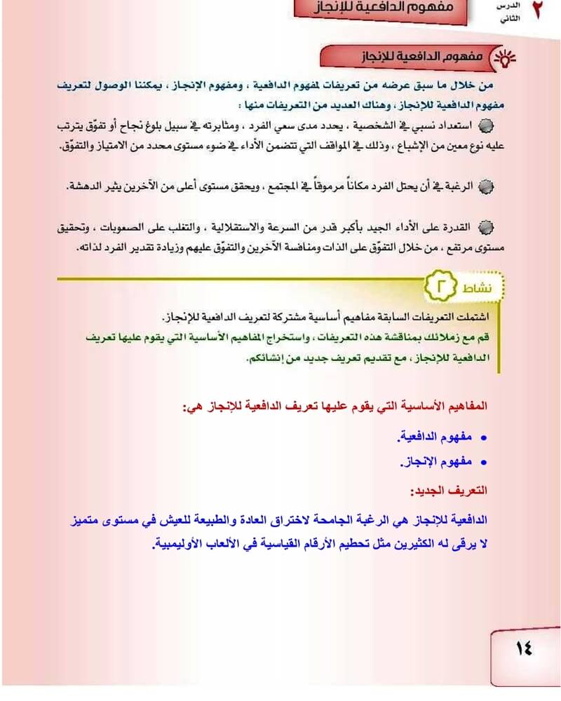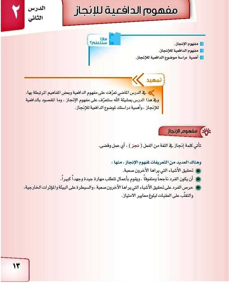 الدرس الثاني مفهوم الدافعية للانجاز