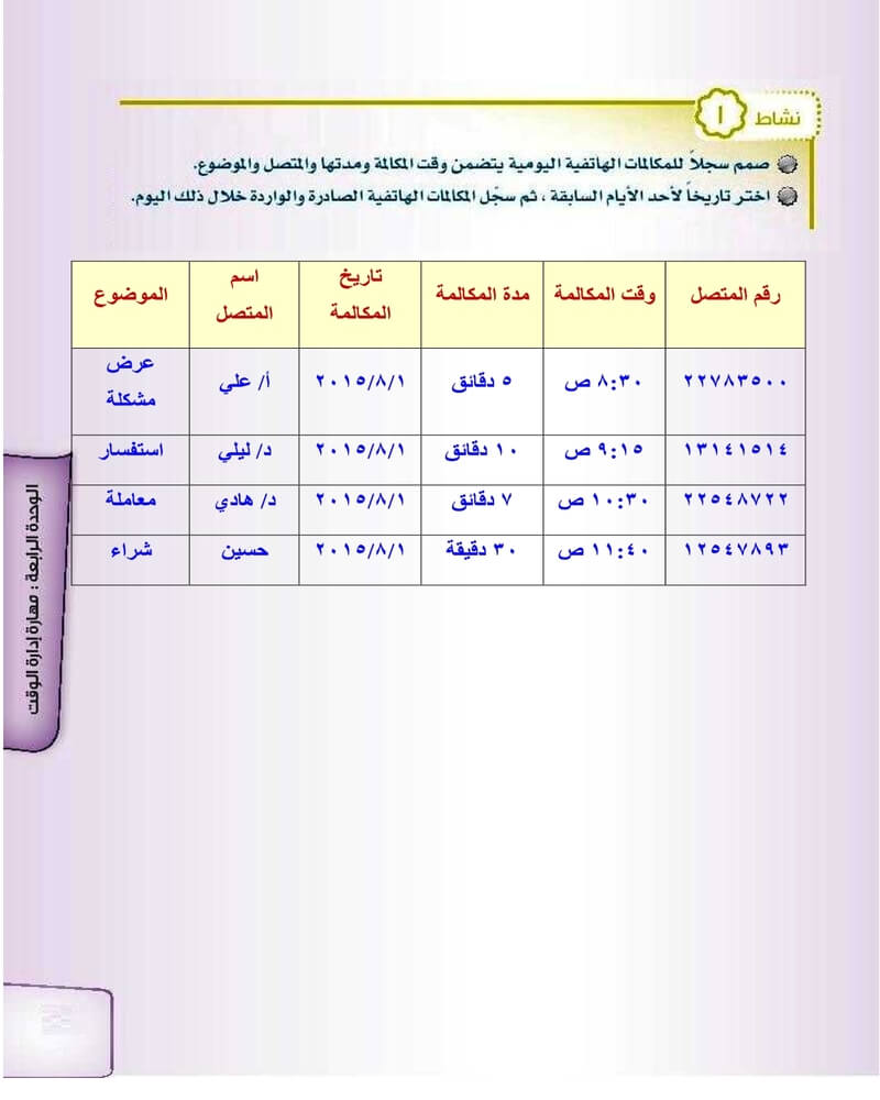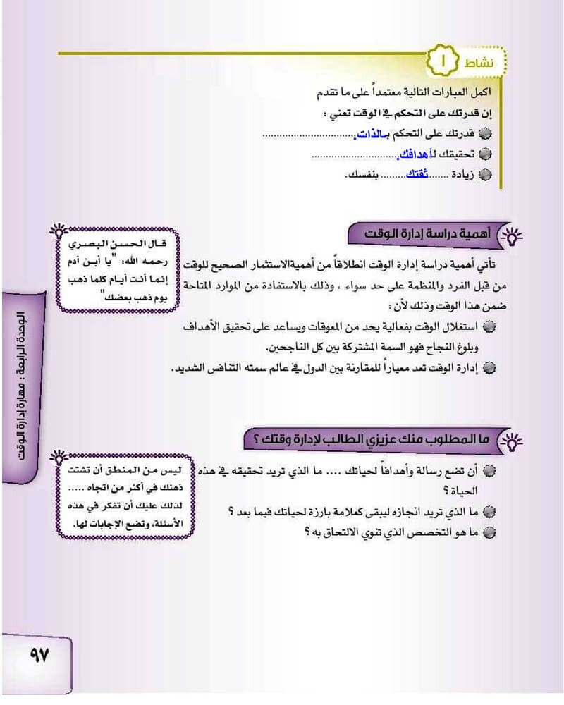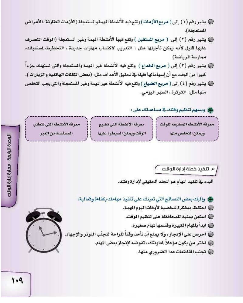 الوحدة الرابعة مهارة ادارة الوقت