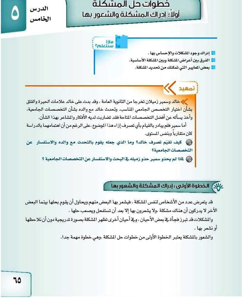 الدرس الخامس ادراك وجود المشكلة وتحديدها