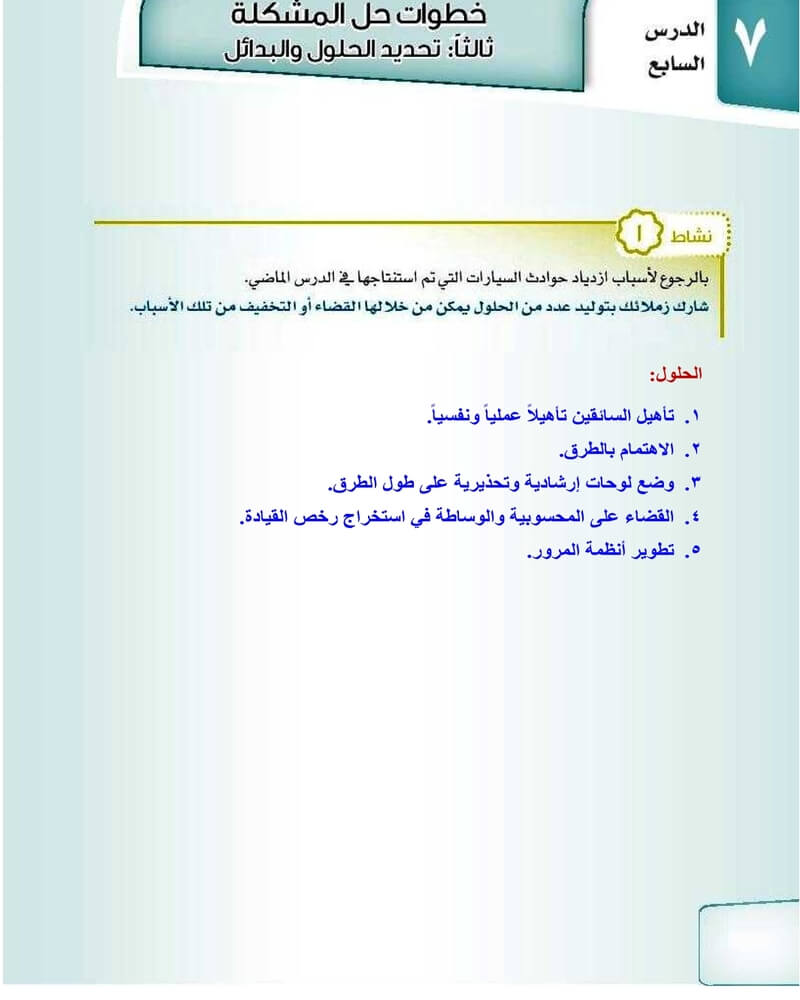 الدرس السابع تحديد الحلول والبدائل