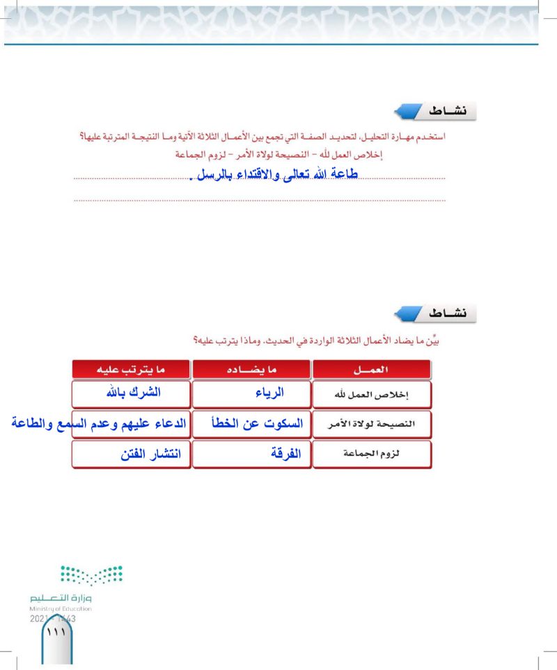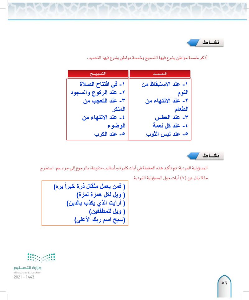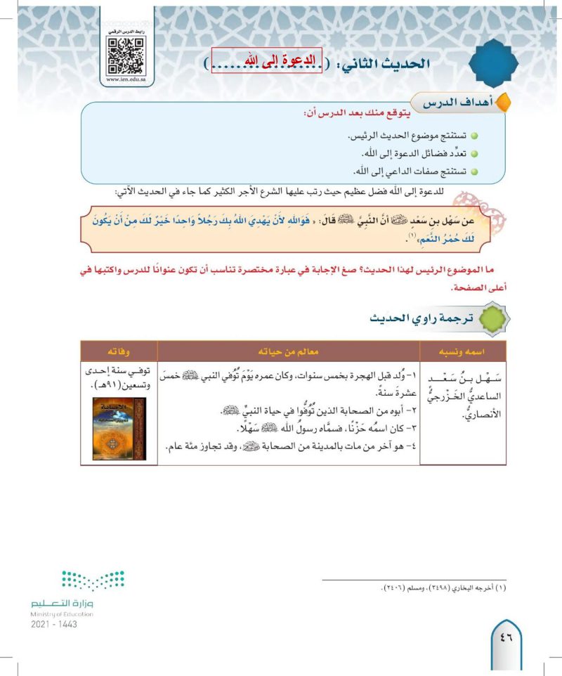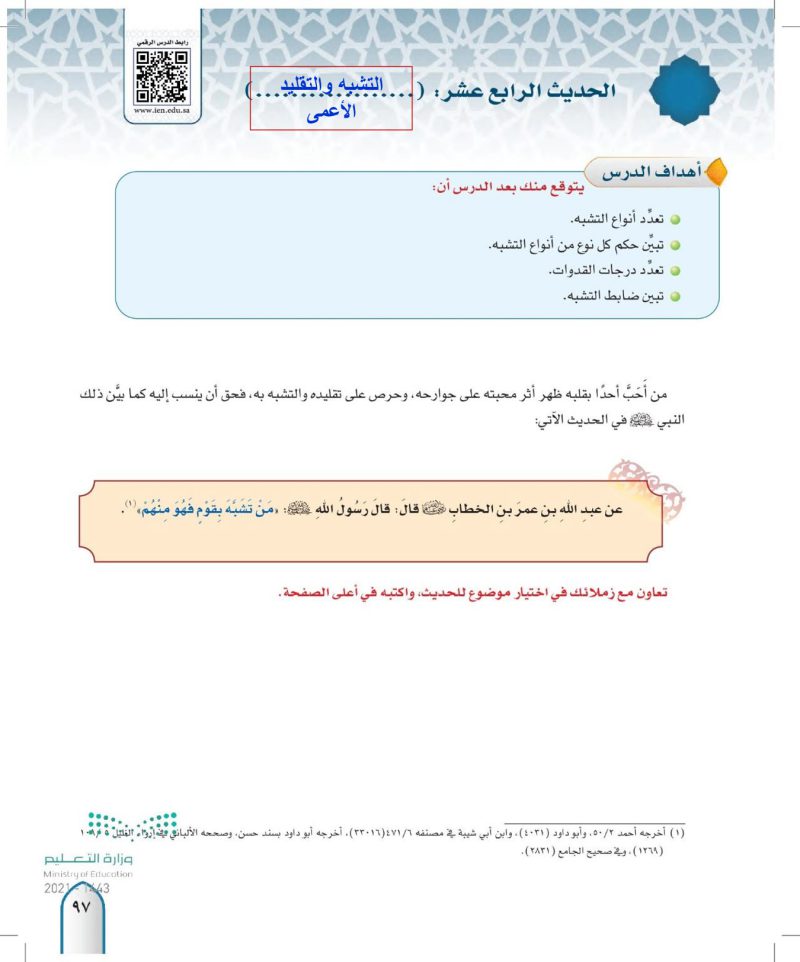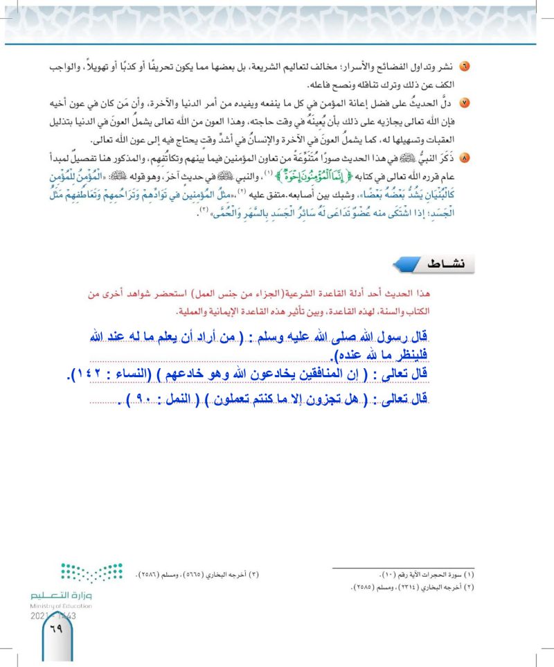 ثانيا الاحاديث