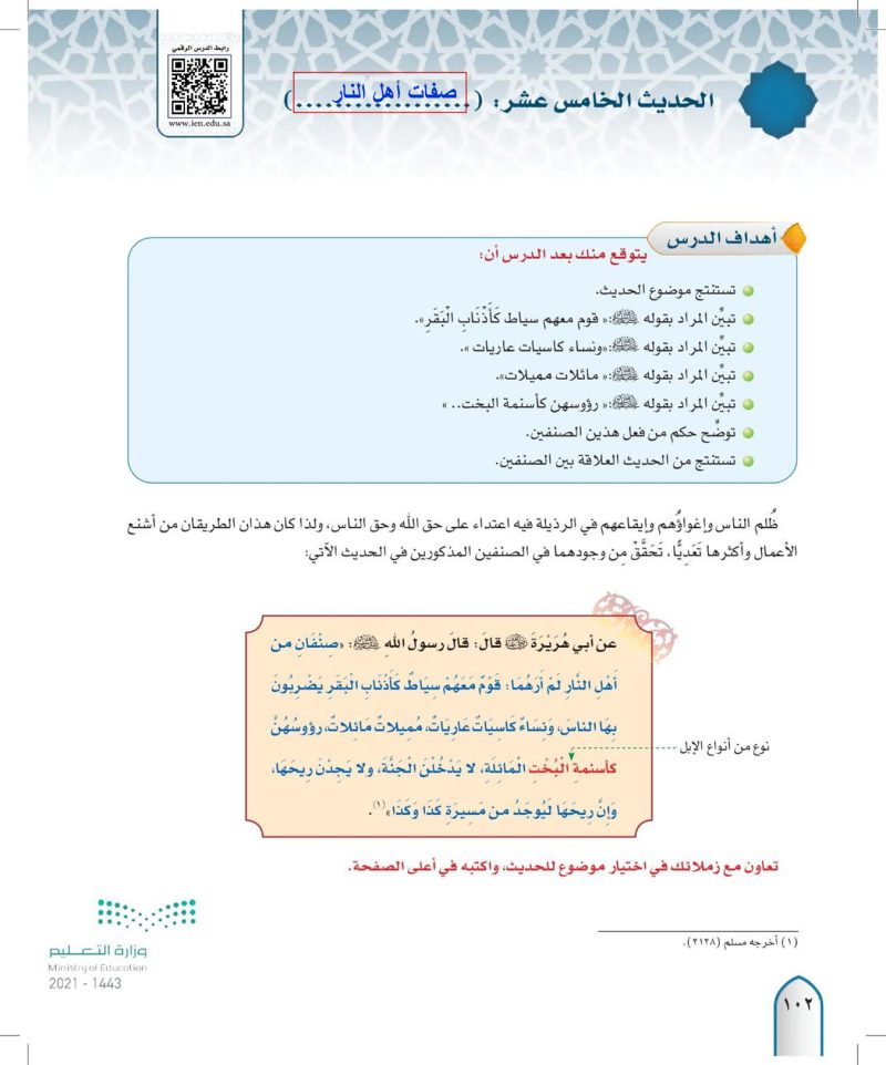الحديث الخامس عشر