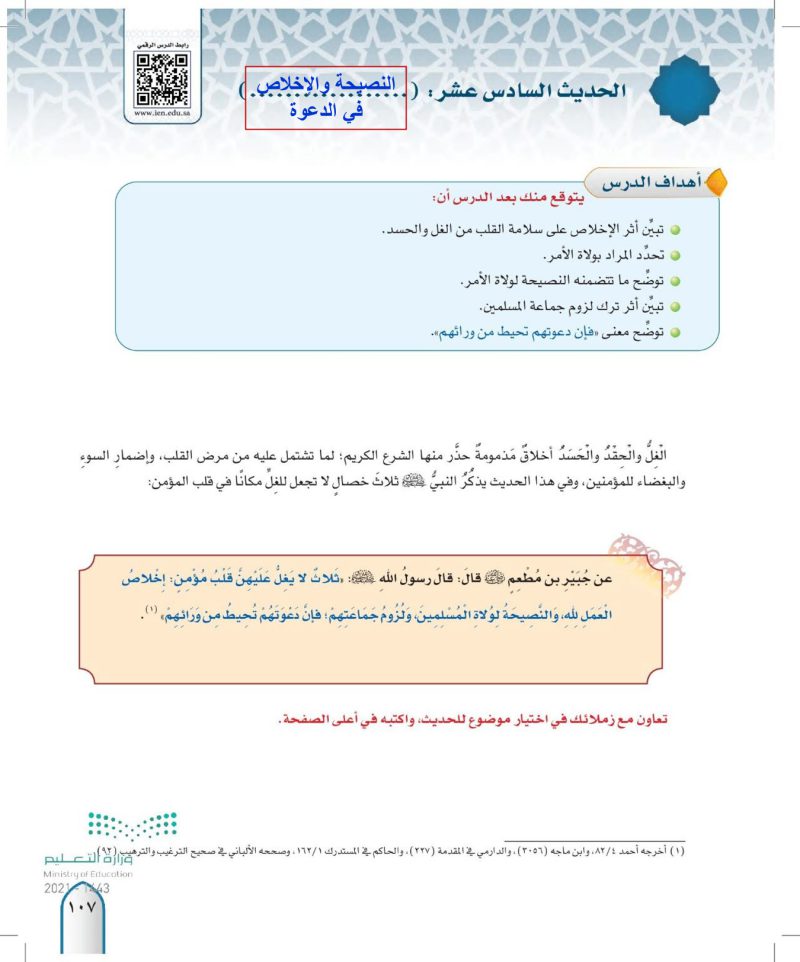 الحديث السادس