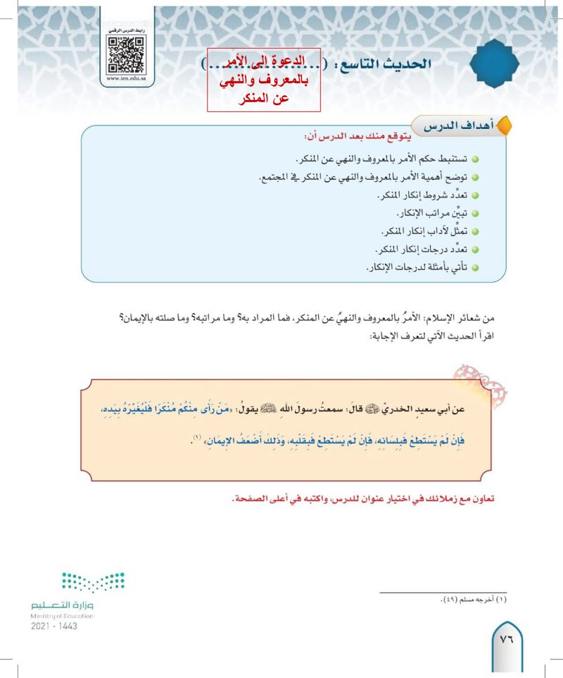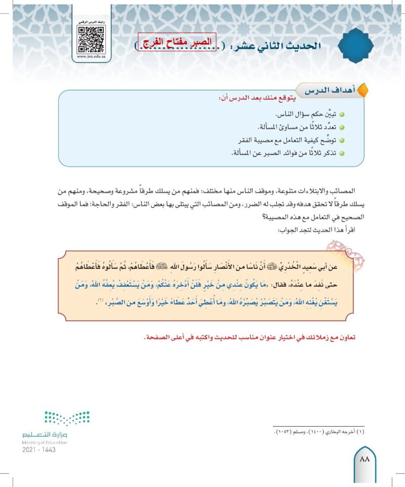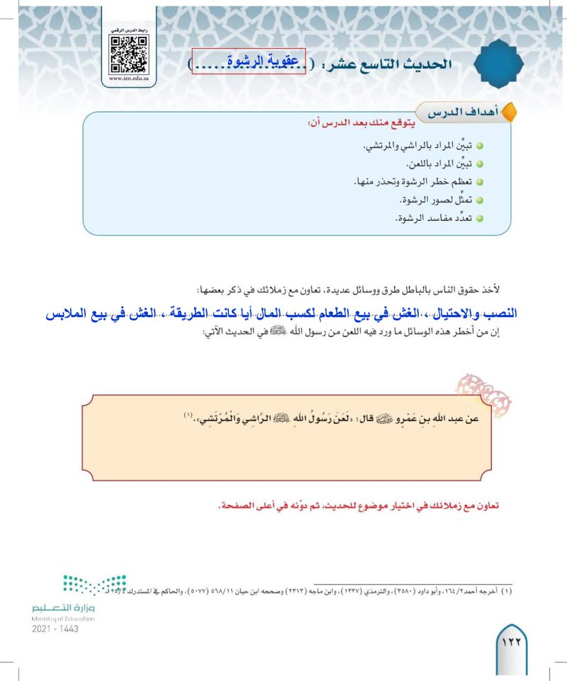 الحديث التاسع عشر