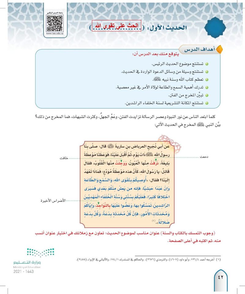الحديث الاول