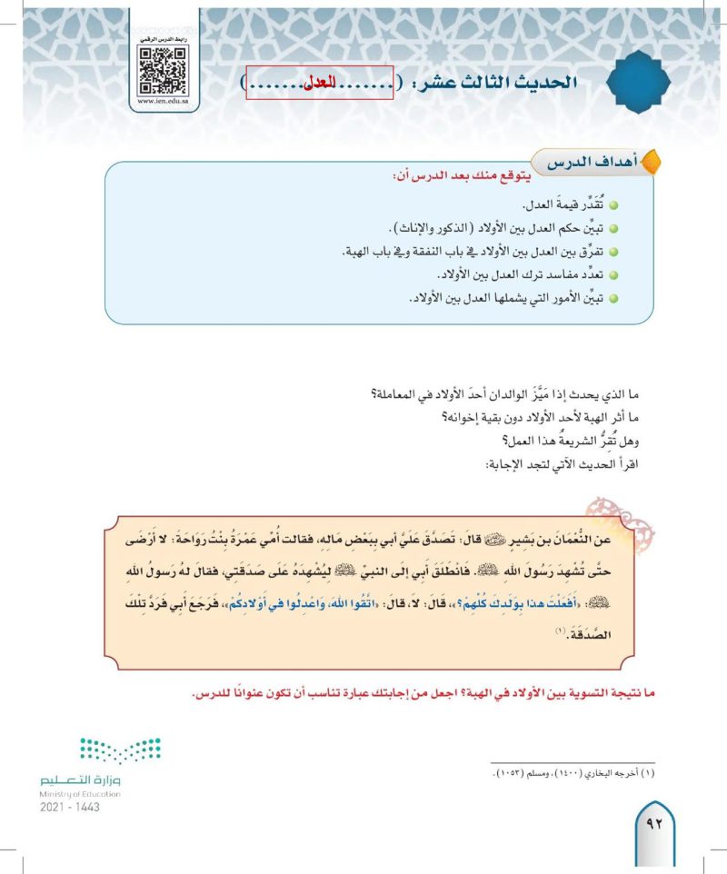 الحديث الثالث عشر