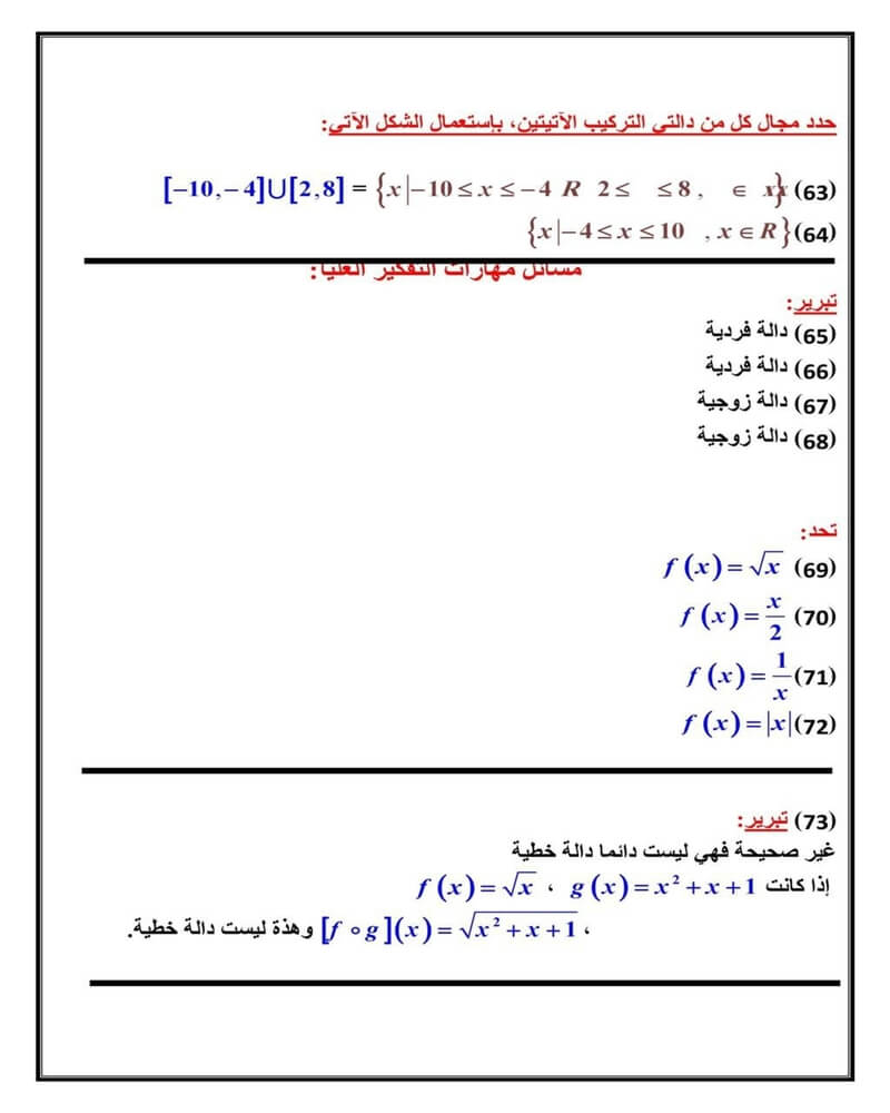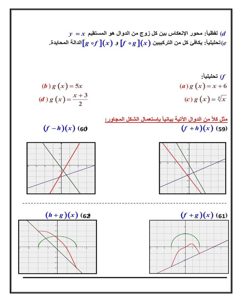 العمليات على الدوال وتركيب دالتين