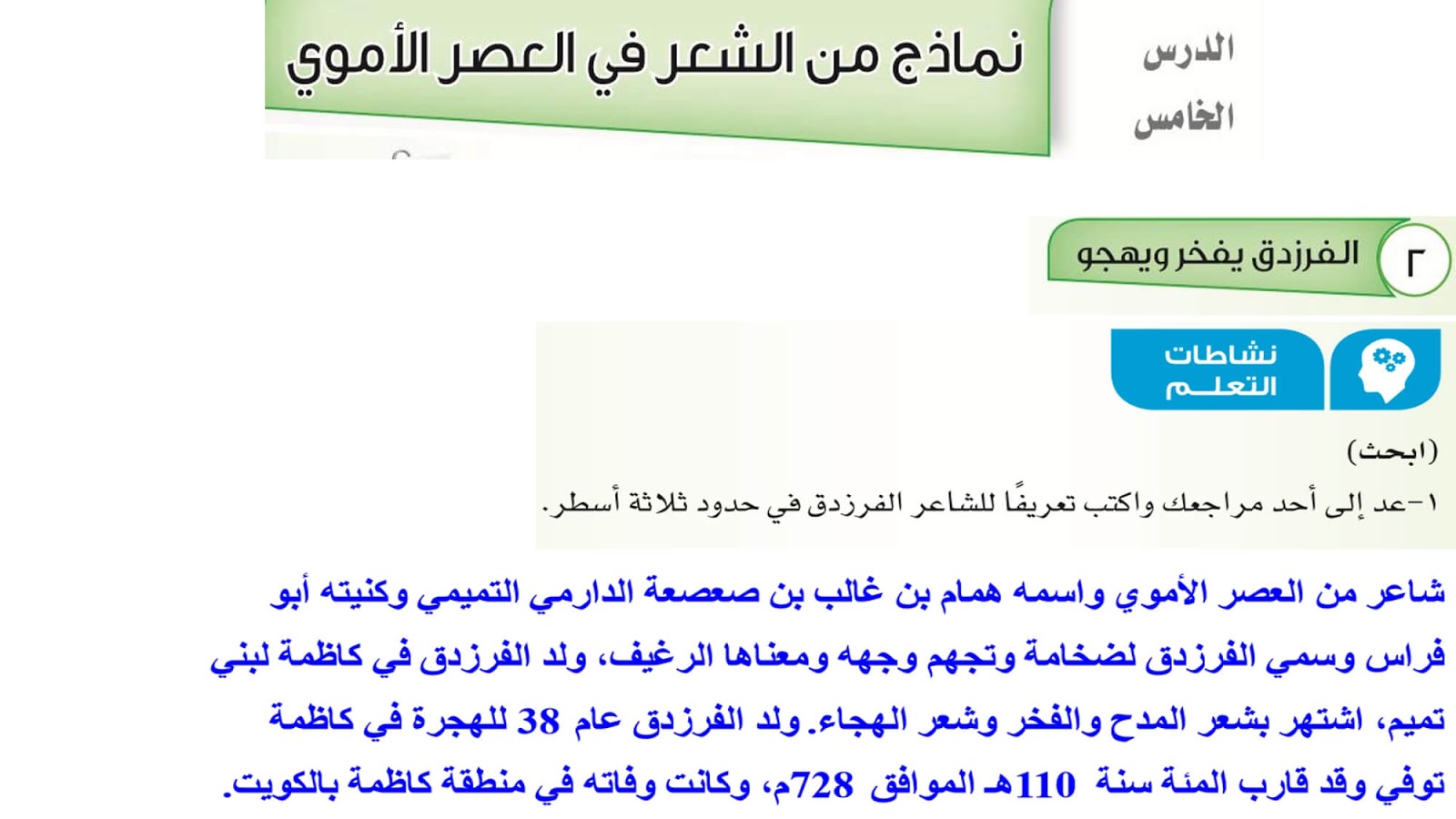 الوحدة الثانية الادب في عصر صدر الاسلام