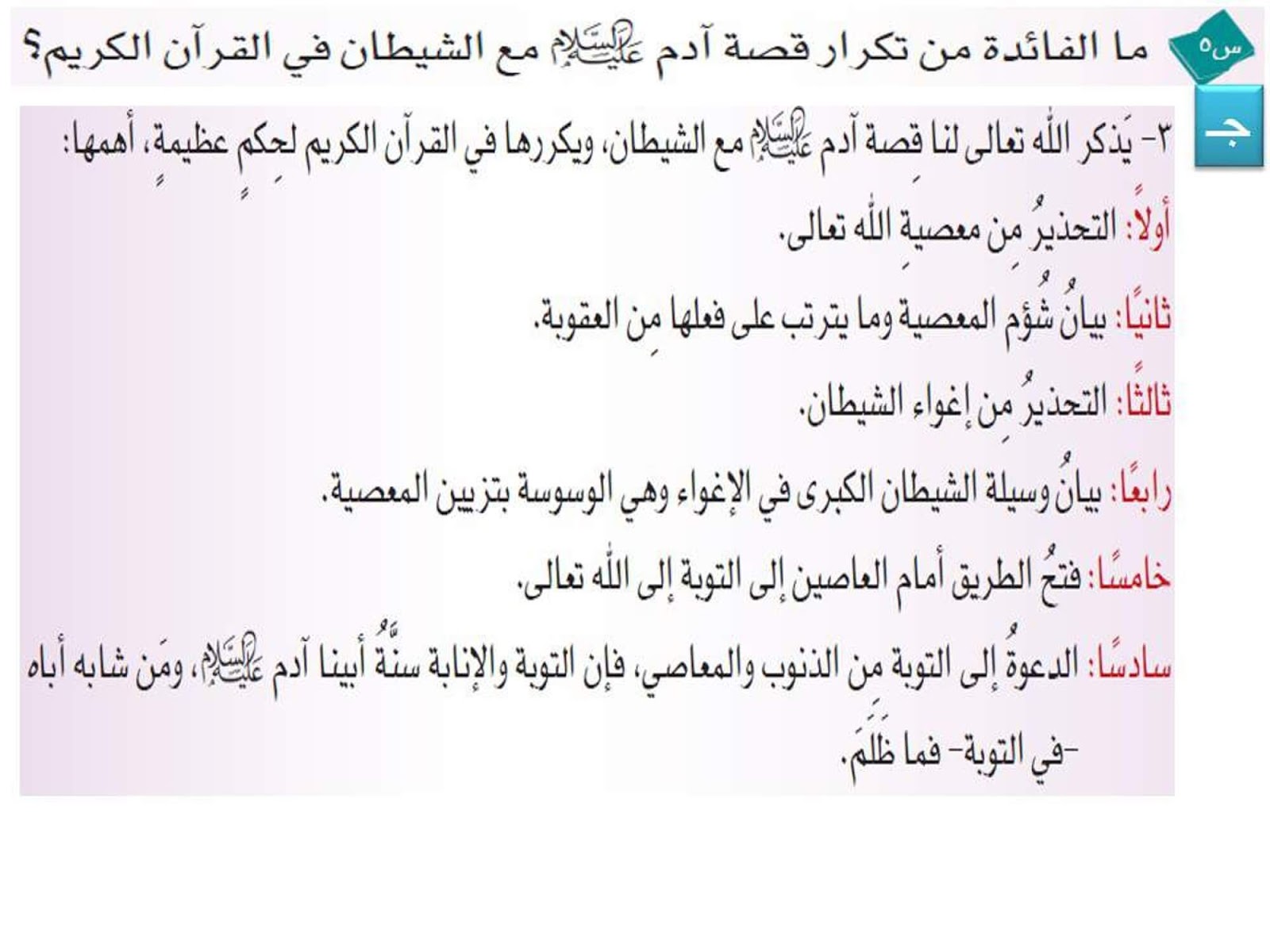 الوحدة الخامسة الركن الرابع الايمان بالرسل